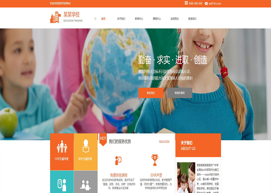 模板名稱:(帶手機版數(shù)據(jù)同步)自適應學校類橙色通用網(wǎng)站模板