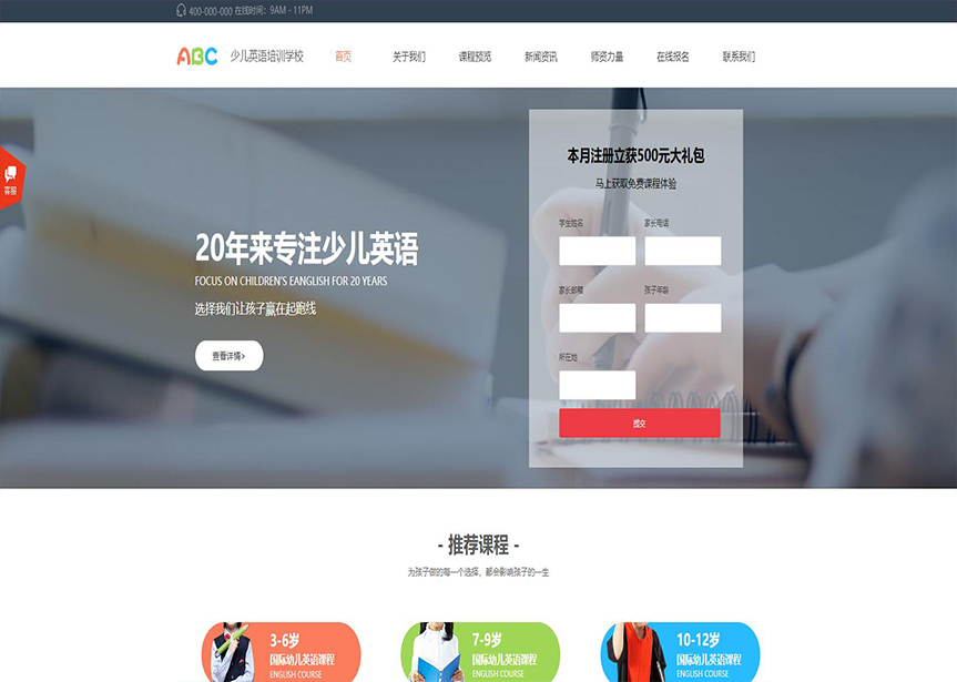 模板名稱:(帶手機(jī)版數(shù)據(jù)同步)自適應(yīng)少兒英語(yǔ)培訓(xùn)學(xué)校網(wǎng)站模板