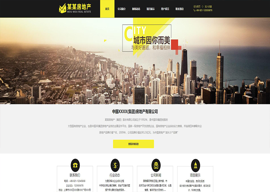 模板名稱:(帶手機版數(shù)據(jù)同步)自適應(yīng)房地產(chǎn)黃色網(wǎng)站模板
