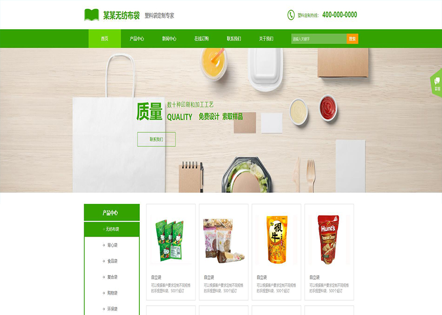 模板名稱:(帶手機(jī)版數(shù)據(jù)同步)自適應(yīng)印刷包裝類無紡布袋網(wǎng)站模板