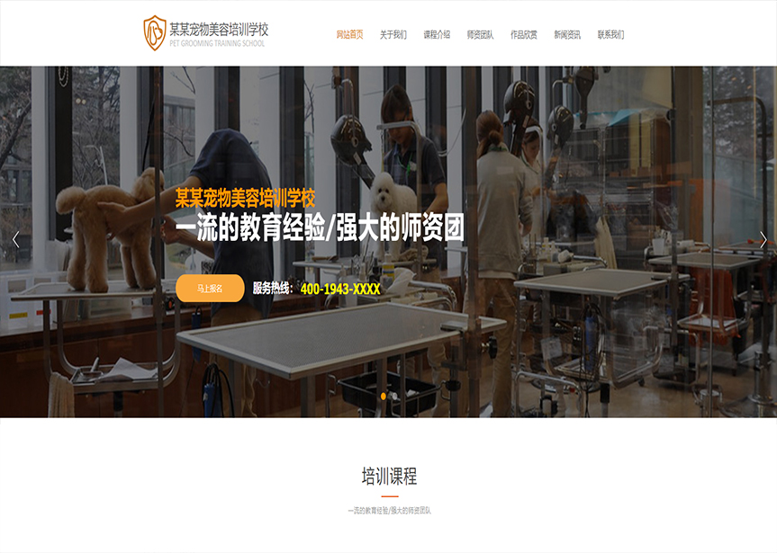 模板名稱:(帶手機(jī)版數(shù)據(jù)同步)自適應(yīng)寵物美容培訓(xùn)學(xué)校網(wǎng)站模板