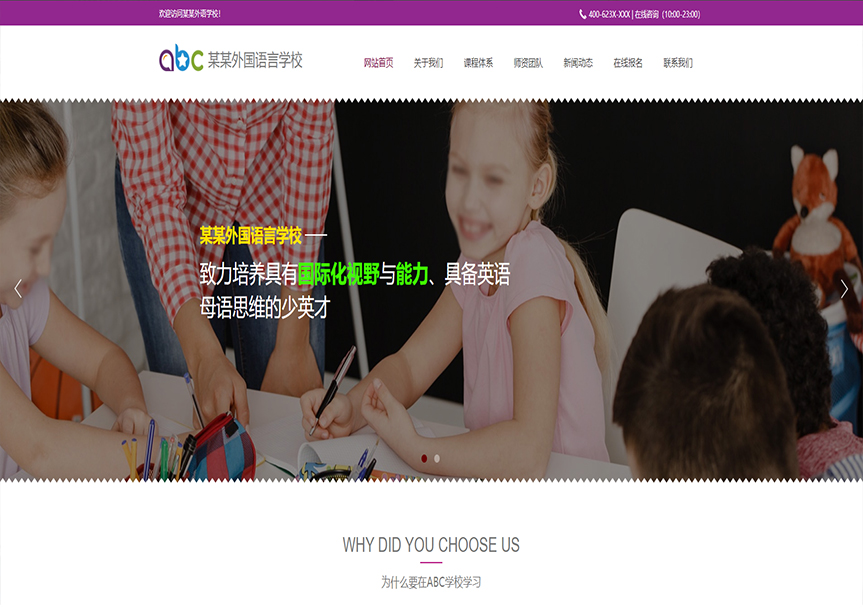 模板名稱:(帶手機版數(shù)據(jù)同步)自適應學校類紫色通用網(wǎng)站模板