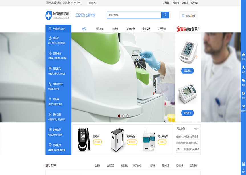 模板名稱:(帶手機(jī)版數(shù)據(jù)同步)自適應(yīng)商城類醫(yī)療器械商城通用網(wǎng)站模板