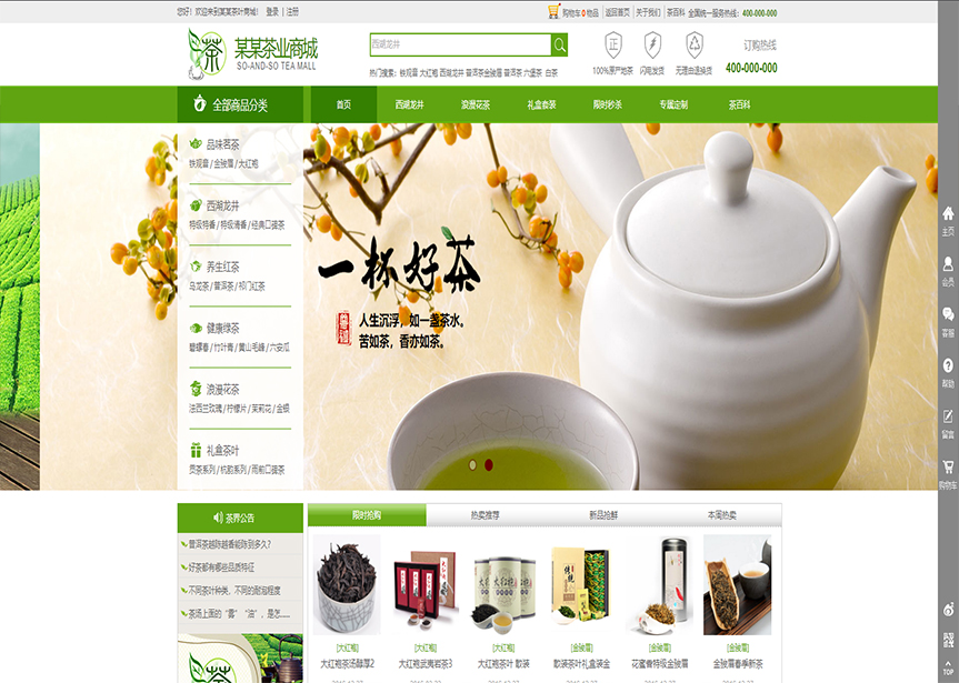 模板名稱:(帶手機(jī)版數(shù)據(jù)同步)自適應(yīng)商城類茶葉商城通用網(wǎng)站模板