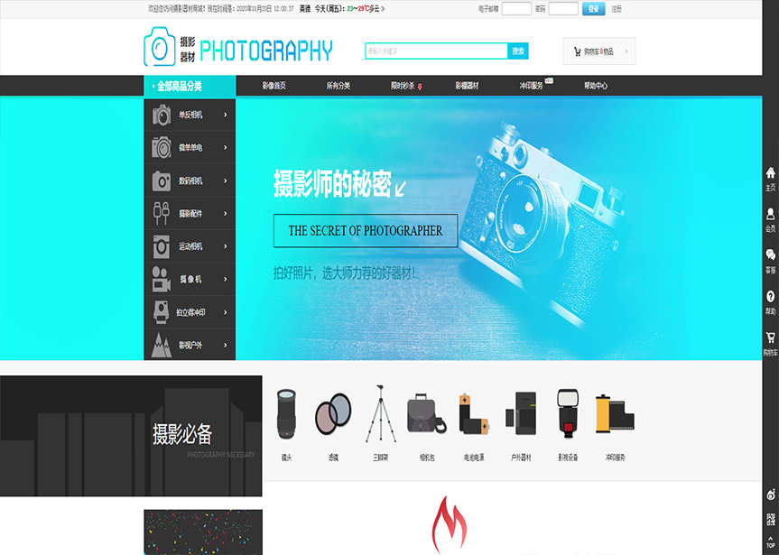 網站模板名稱:(帶手機版數據同步)自適應商城類攝影器材商城通用網站模板