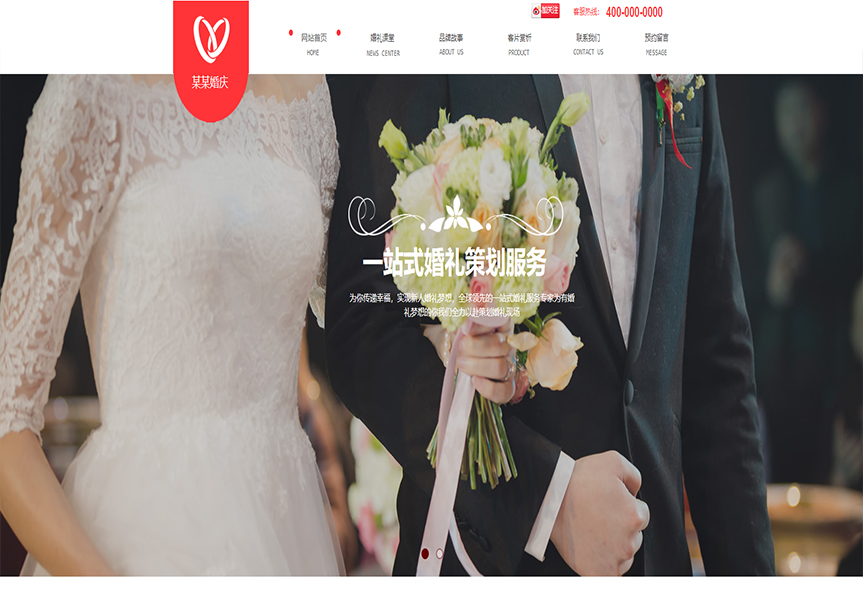 網站模板名稱:(帶手機版數據同步)自適應婚禮婚慶類紅色網站模板