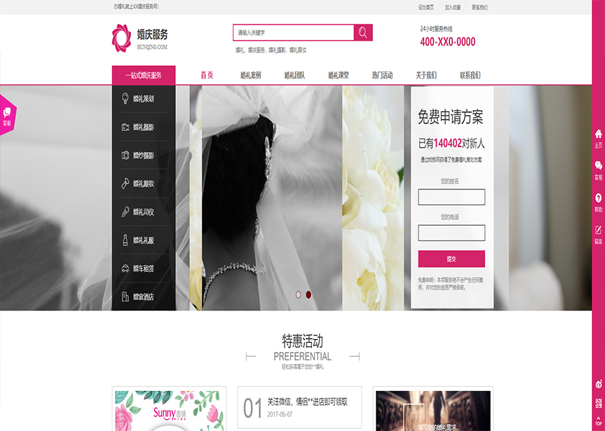 網(wǎng)站模板名稱:(帶手機(jī)版數(shù)據(jù)同步)自適應(yīng)婚禮婚慶類通用網(wǎng)站模板