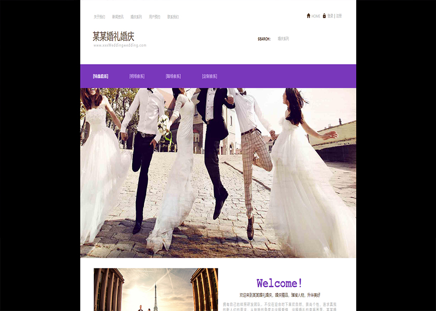 網(wǎng)站模板名稱:(帶手機(jī)版數(shù)據(jù)同步)自適應(yīng)婚禮婚慶類紫色網(wǎng)站模板