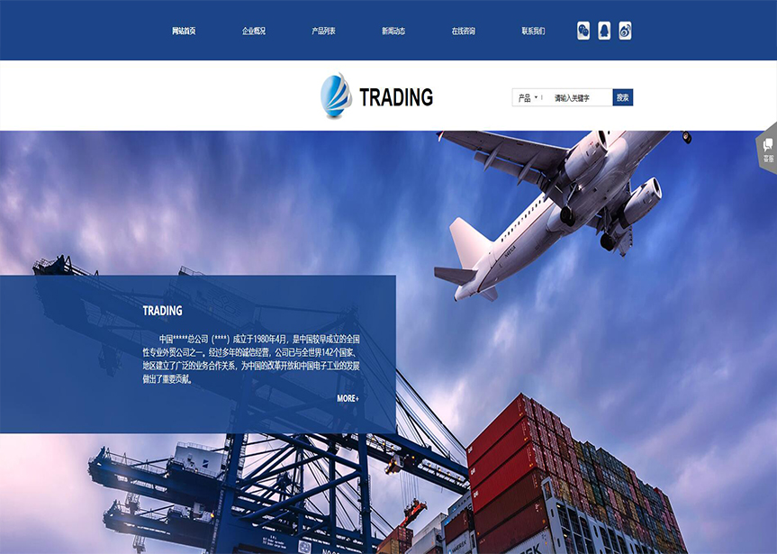網(wǎng)站模板名稱:(帶手機(jī)版數(shù)據(jù)同步)自適應(yīng)貿(mào)易出口類藍(lán)色網(wǎng)站模板