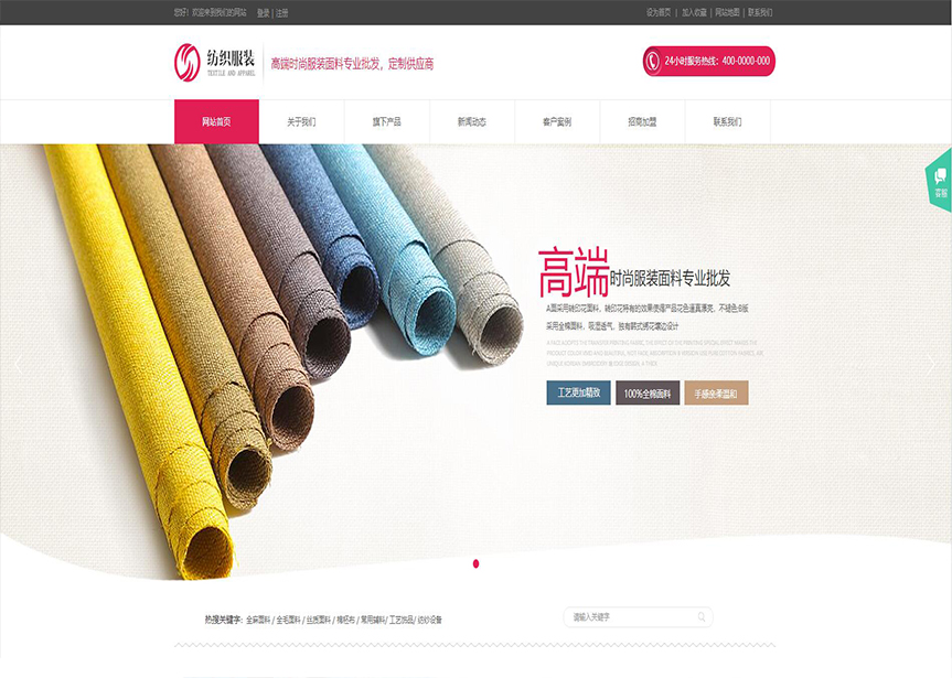 模板名稱:(帶手機版數(shù)據(jù)同步)自適應(yīng)紡織類粉色網(wǎng)站模板