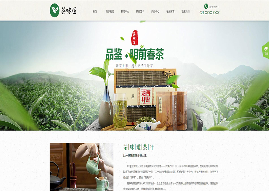 模板名稱:(帶手機版數(shù)據(jù)同步)自適應(yīng)茶葉類綠色網(wǎng)站模板