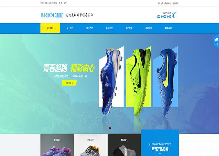 模板名稱:(帶手機(jī)版數(shù)據(jù)同步)自適應(yīng)鞋帽類藍(lán)色網(wǎng)站模板